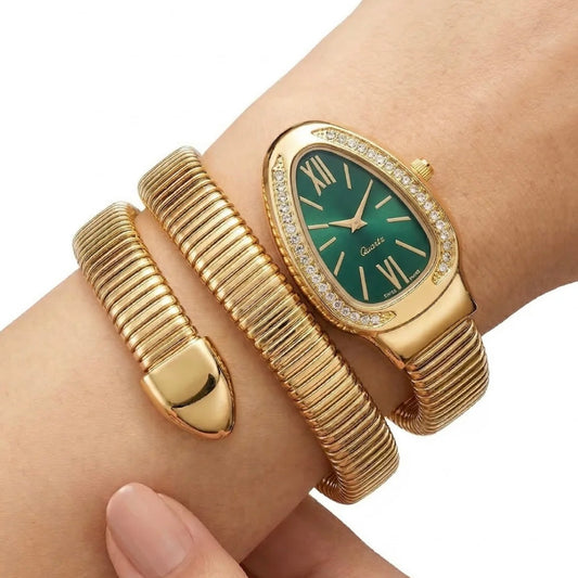 Golden Snake Wrap Watch - Green